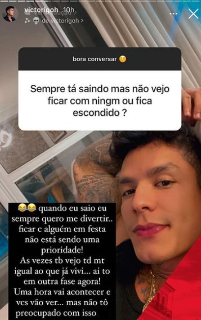 Na manhã desta terça, antes dos boatos do affair surgirem, Victor Igoh afirmou nos stories do Instagram que as pessoas saberiam quando ele estivesse com alguém: "Tô em outra fase agora! Uma hora vai acontecer e vocês vão ver... mas não tô preocupado com isso no momento".