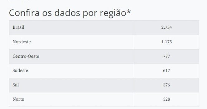 Ao todo, o país registrou 2.754 casos --1.175 deles na região Nordeste.