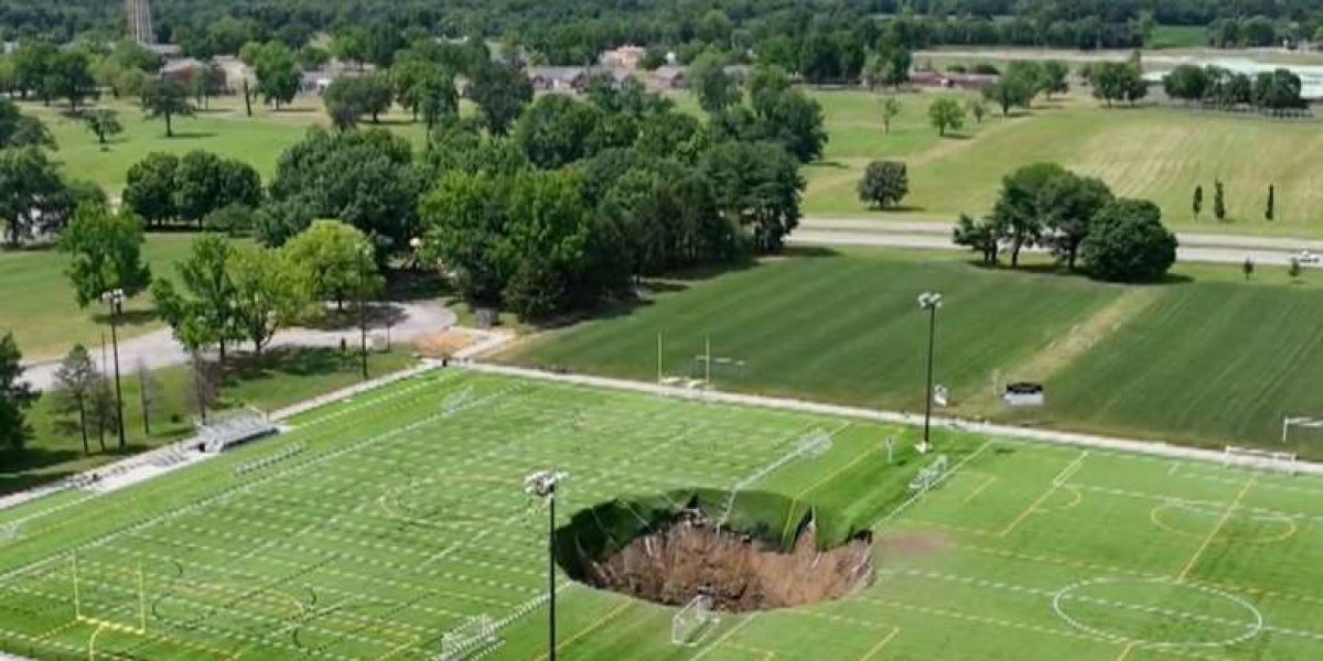 Cratera gigante se abre em campo de futebol nos EUA