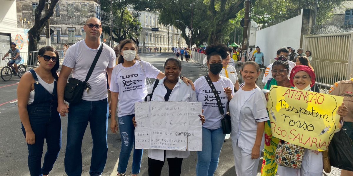 Profissionais da enfermagem protestam por implantação de novo piso, em Salvador